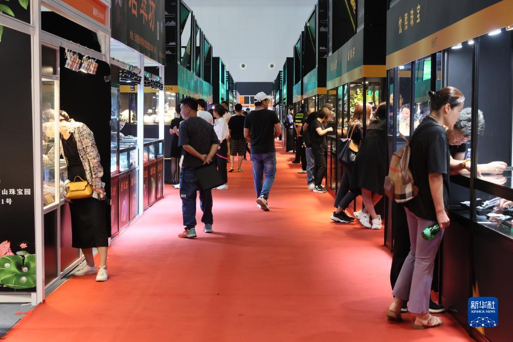6月22日,參觀(guān)者在2023上海國際珠寶首飾展覽會(huì )上選購。