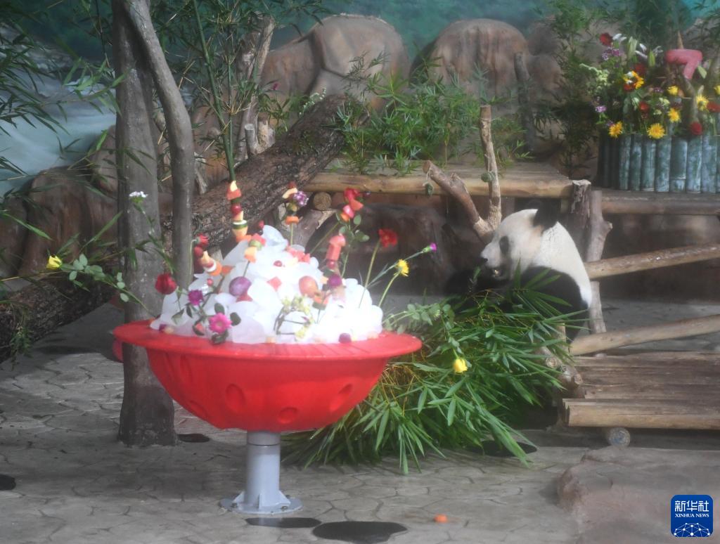 當日,廣西南寧市動(dòng)物園為大熊貓兄妹“績(jì)美”“績(jì)蘭”舉行7歲生日慶?;顒?dòng)。大熊貓“績(jì)美”“績(jì)蘭”均來(lái)自成都大熊貓繁育研究基地,兄妹倆出生于2016年6月,2019年來(lái)到南寧生活。