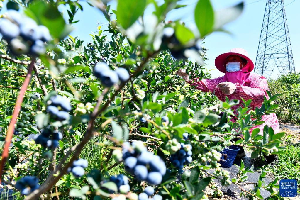 6月23日,在乳山伯瑞合作聯(lián)社夏村鎮藍莓基地,果農在采摘藍莓。該聯(lián)合社帶動(dòng)600多位村民就業(yè)增收。