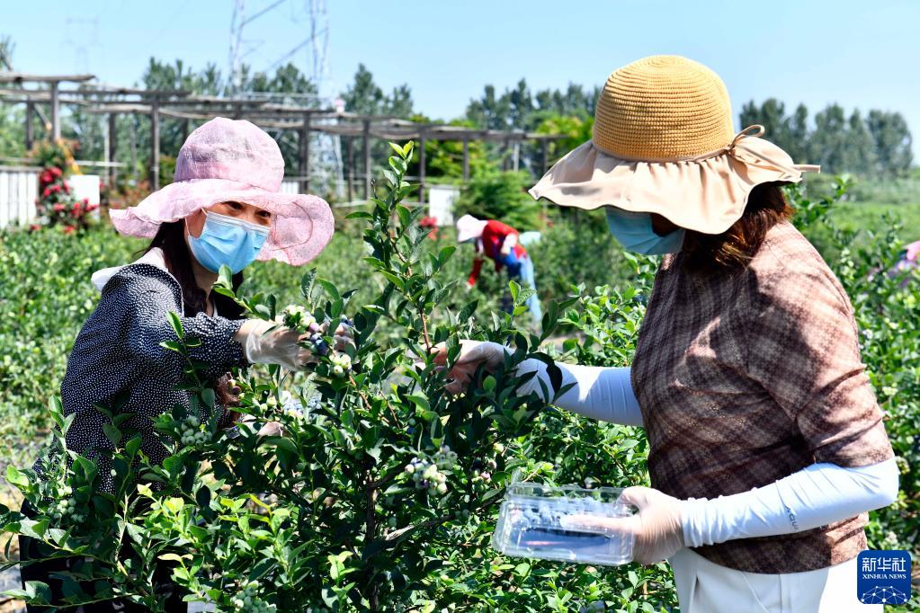 6月23日,在乳山伯瑞合作聯(lián)社夏村鎮藍莓基地,游客在采摘藍莓。該聯(lián)合社帶動(dòng)600多位村民就業(yè)增收。