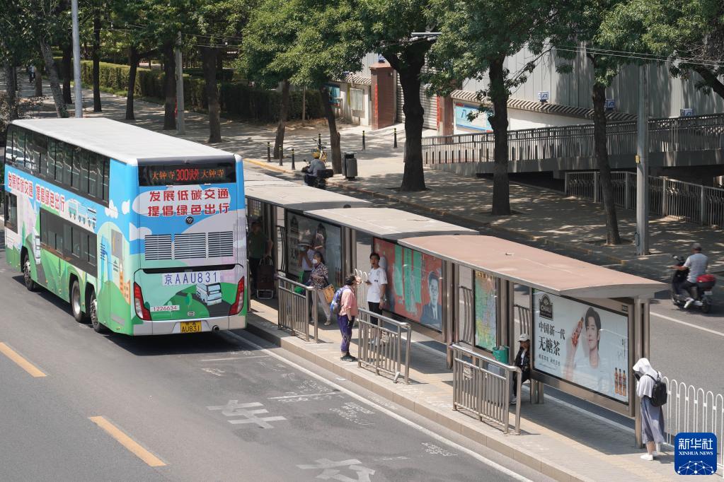 6月23日,市民午間在位于北京市海淀區的北太平橋西公交站等待公交車(chē)。