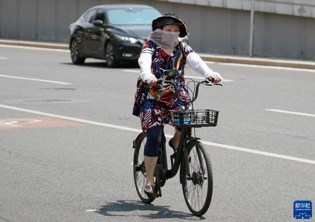6月23日,市民午間騎行在位于北京市海淀區的北三環(huán)中路。