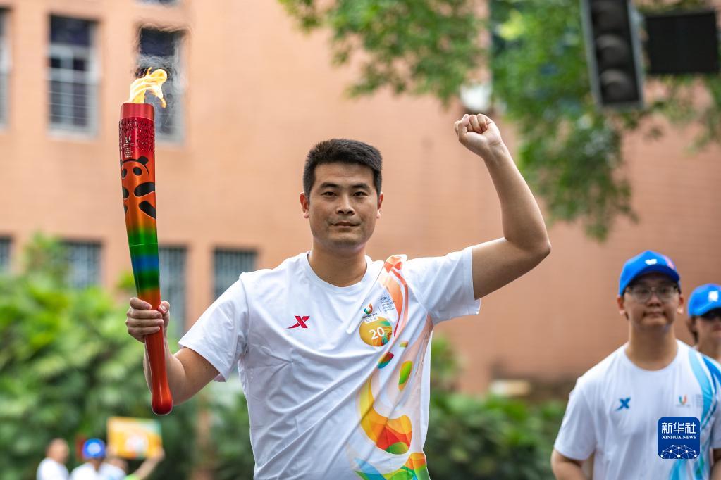 當日,成都第31屆世界大學(xué)生夏季運動(dòng)會(huì )火炬傳遞重慶站在重慶大學(xué)舉行。