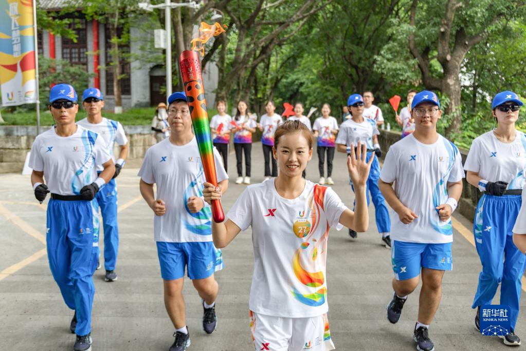 當日,成都第31屆世界大學(xué)生夏季運動(dòng)會(huì )火炬傳遞重慶站在重慶大學(xué)舉行。