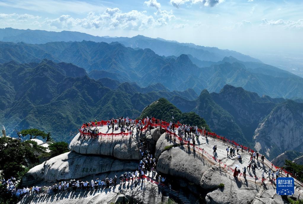 6月23日,游客在華山西峰游覽(無(wú)人機照片)