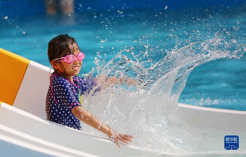 6月23日,小朋友在山東省滕州市一家水上樂(lè )園里戲水玩耍。