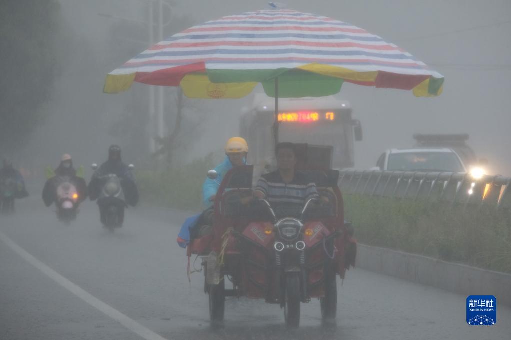 6月24日,市民冒雨騎行在廣西南寧市街頭。