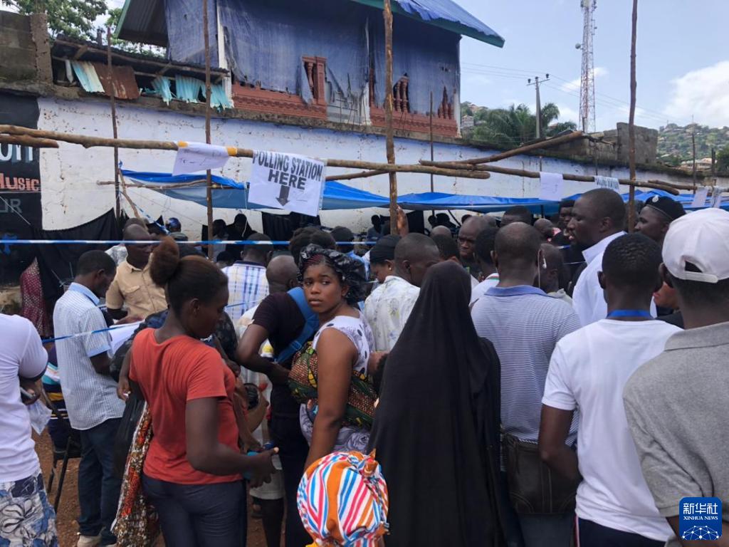 6月24日,在塞拉利昂首都弗里敦一處投票站,選民們排隊等待投票。