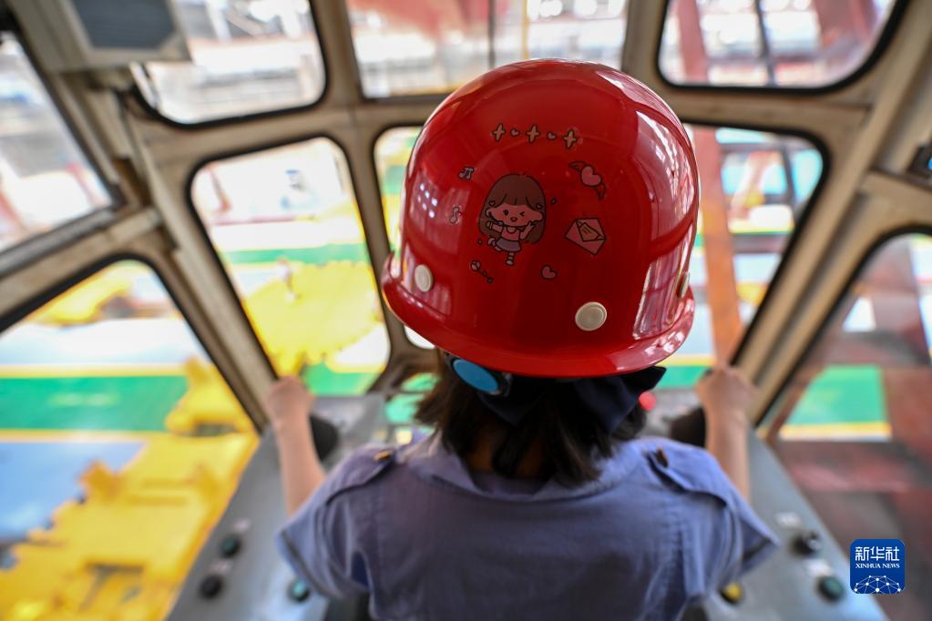 在中國鐵路太原局集團有限公司太原機務(wù)段太北檢修車(chē)間,天車(chē)司機王孟媛在天車(chē)上作業(yè)(6月20日攝)。