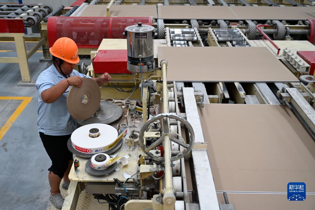 6月25日,工人在隆化縣泰山石膏承德有限公司生產(chǎn)車(chē)間忙碌。