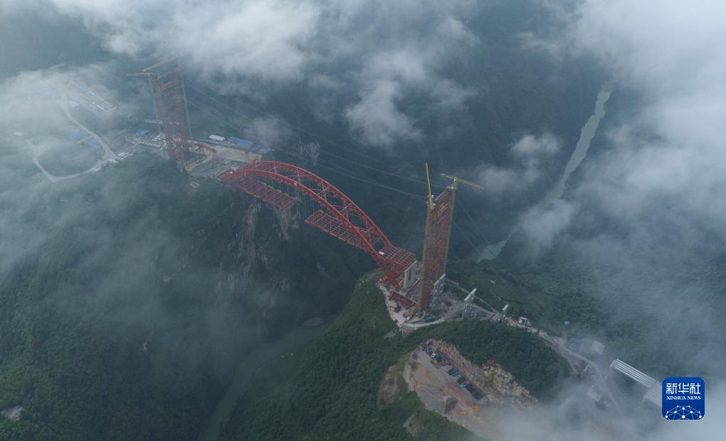 這是6月25日拍攝的建設中的溇水河特大橋(無(wú)人機照片)。