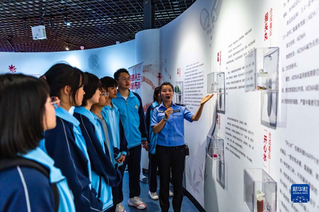 6月25日,民警在貴州省安順市禁毒宣傳教育基地為學(xué)生講解毒品相關(guān)知識。