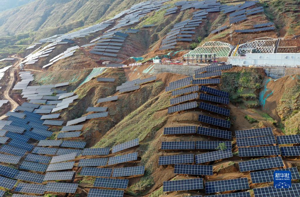 6月25日,工人在云南省會(huì )澤縣娜姑鎮云峰村的光伏項目現場(chǎng)施工(無(wú)人機照片)。該項目流轉土地5000余畝,預計7月底并網(wǎng)發(fā)電。