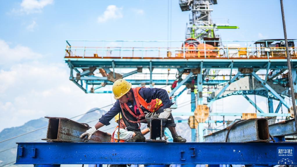 貴州公路集團工人在納晴高速牂牁江大橋進(jìn)行施工(6月25日攝)。