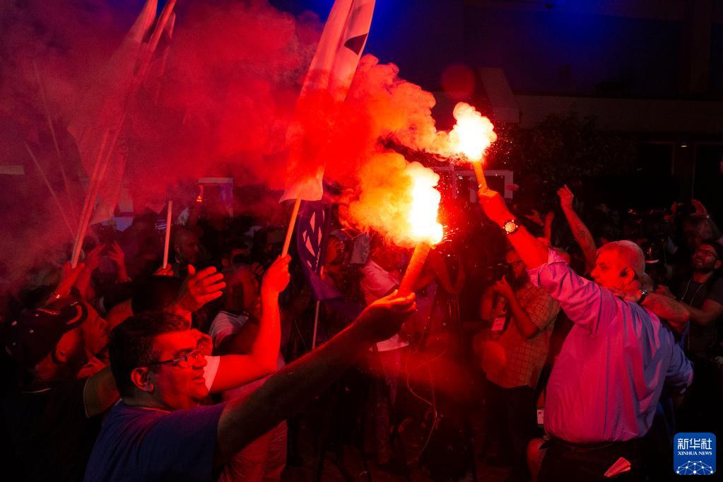 6月25日,希臘新民主黨支持者在雅典慶祝該黨派贏(yíng)得選舉。