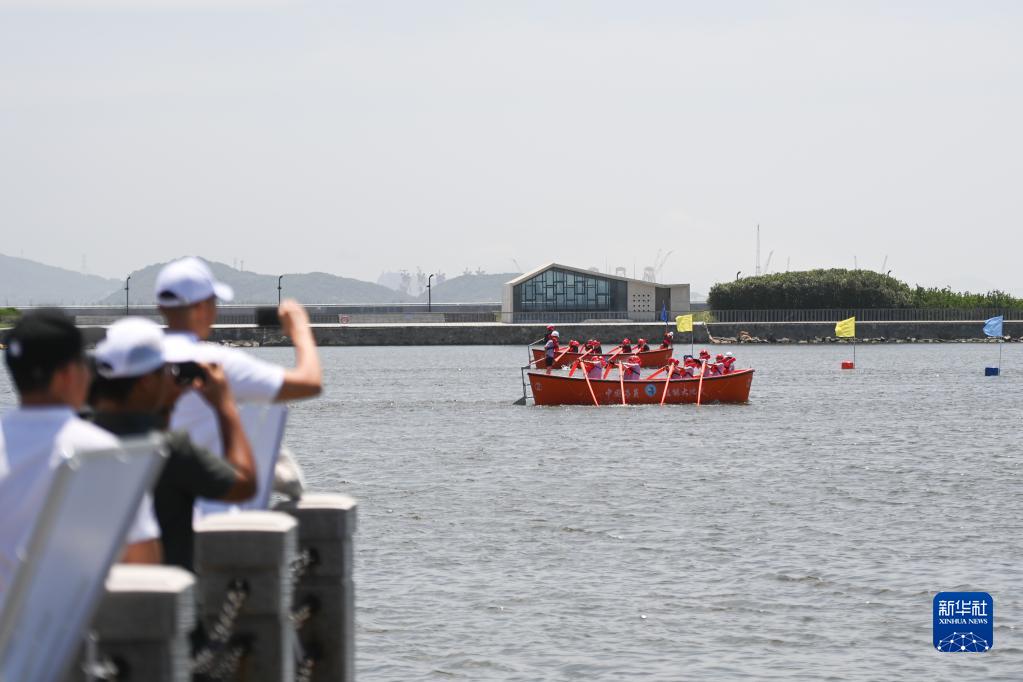 6月26日,參賽隊員在浙江舟山長(cháng)峙島攬月湖參加水上操艇比賽。