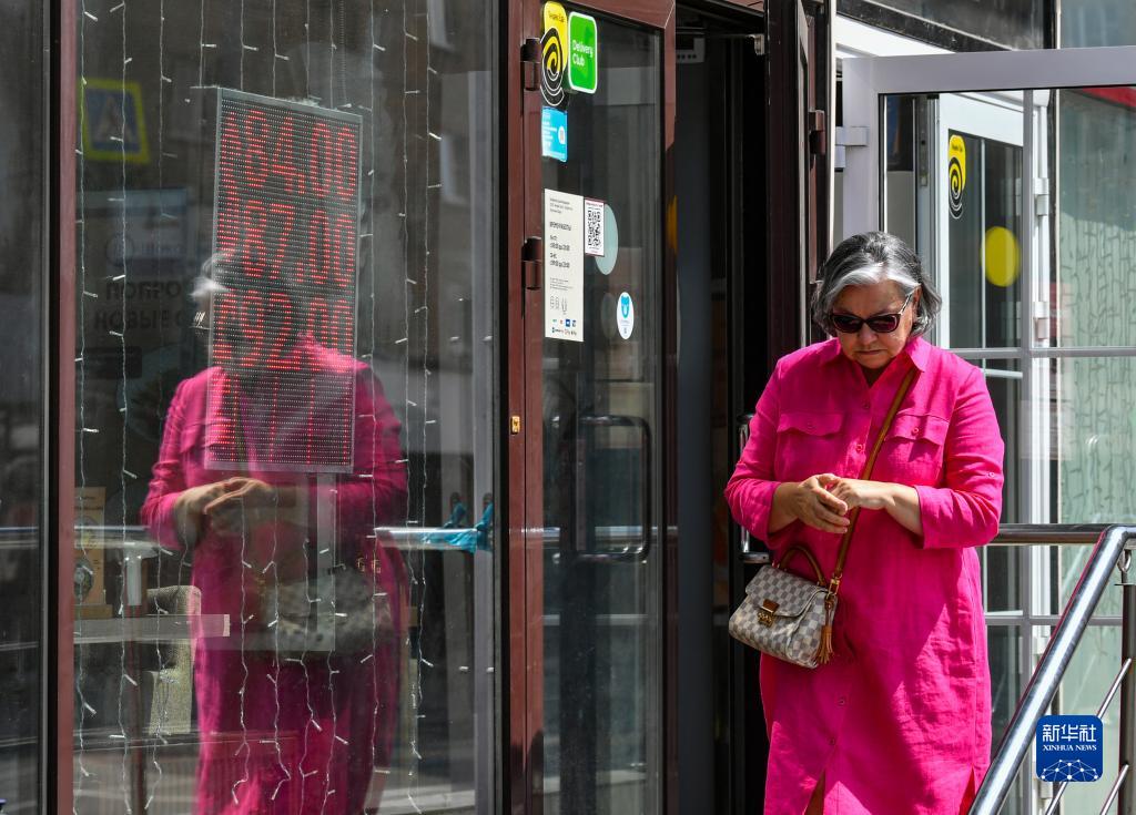 6月26日,在俄羅斯首都莫斯科,行人經(jīng)過(guò)一家外匯兌換點(diǎn)。