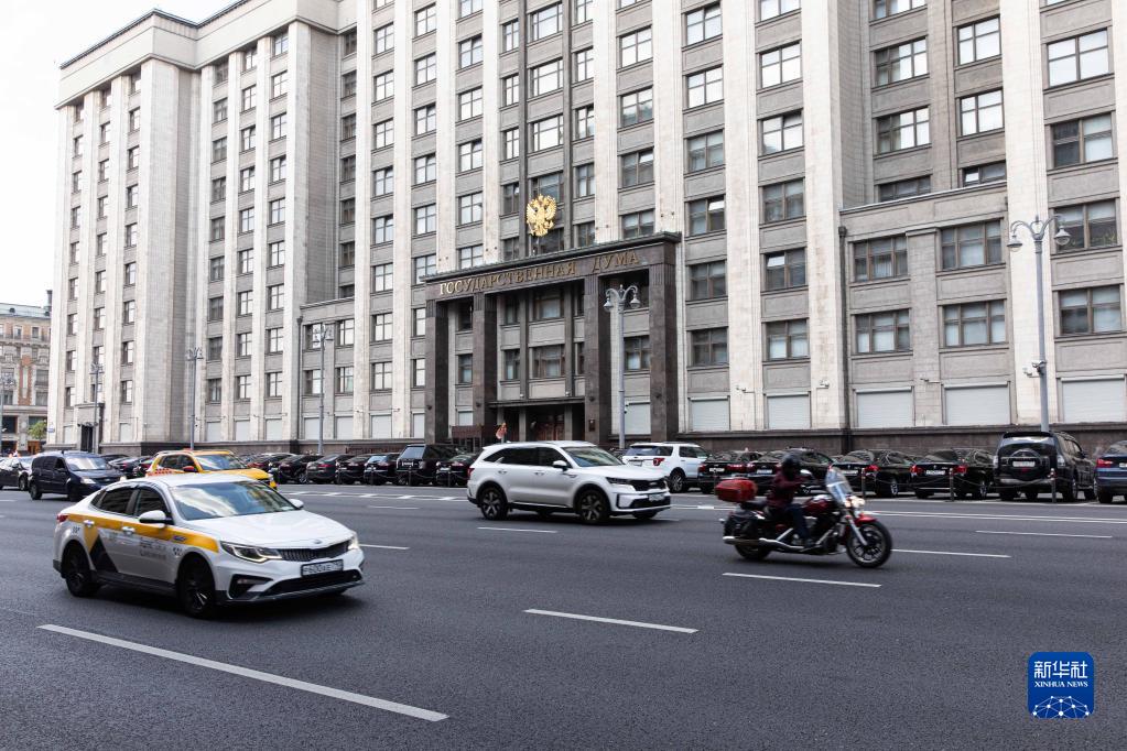 6月26日,在俄羅斯首都莫斯科,車(chē)輛駛過(guò)市中心道路。