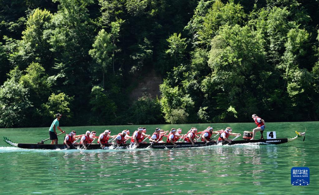 6月25日,在瑞士埃格利紹,人們參加賽龍舟活動(dòng)。