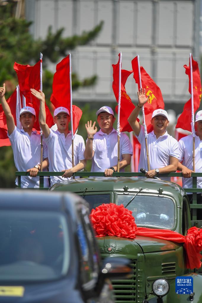 6月26日,解放卡車(chē)巡游車(chē)隊行駛在長(cháng)春市人民大街上。