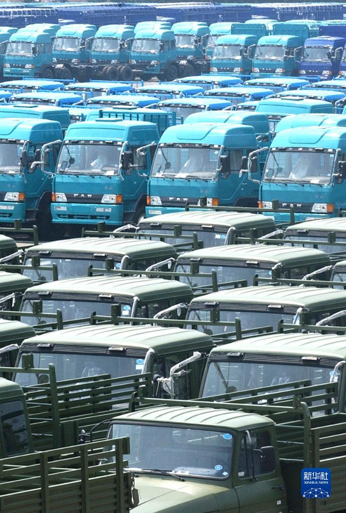 這是2003年7月13日拍攝的中國第一汽車(chē)集團等待外運的“解放”卡車(chē)。