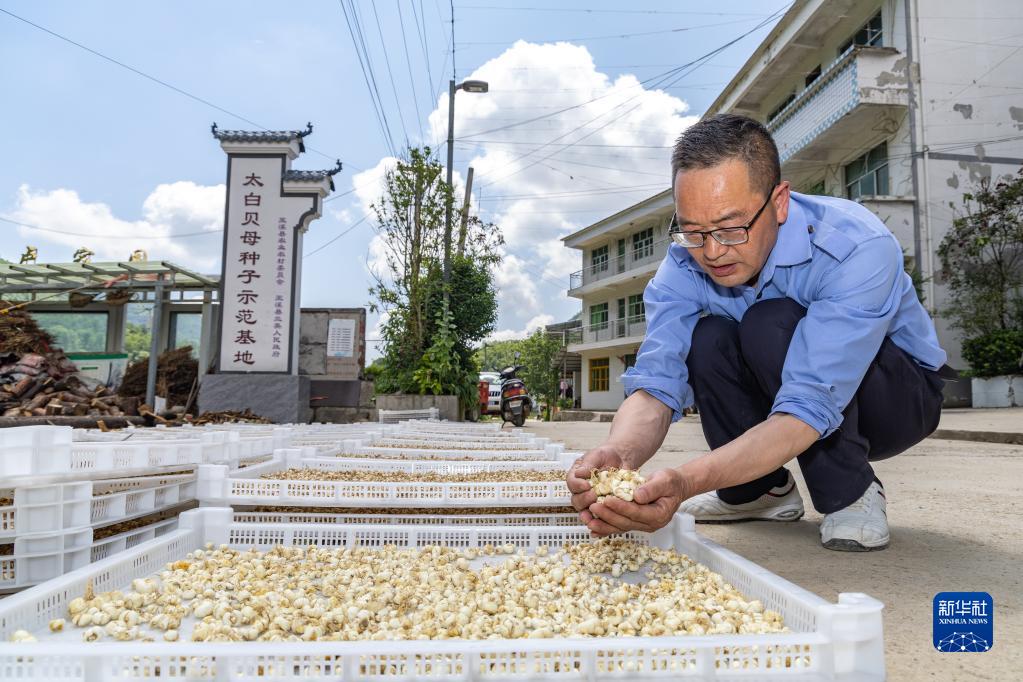 6月26日,在重慶市巫溪縣蘭英鄉西安村,村民在查看烘干后的貝母品質(zhì)。