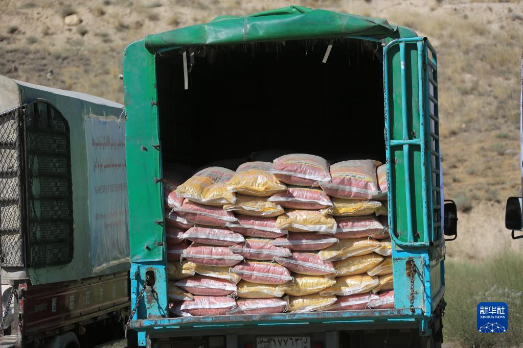 這是6月21日在阿富汗盧格爾省拍攝的中國中冶集團艾娜克銅礦項目捐贈的宰牲節過(guò)節物資。