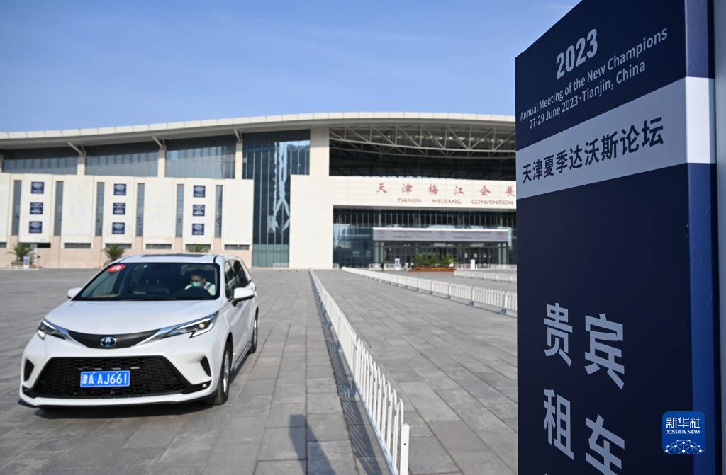 6月27日,一輛嘉賓用車(chē)??吭诘谑膶孟募具_沃斯論壇會(huì )場(chǎng)前。