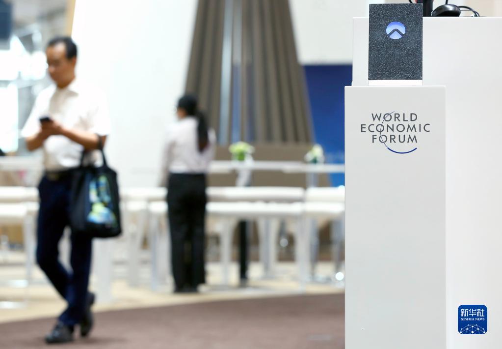 這是6月27日拍攝的第十四屆夏季達沃斯論壇現場(chǎng)。