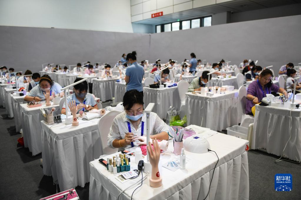 6月27日,參賽選手進(jìn)行美甲項目比賽。