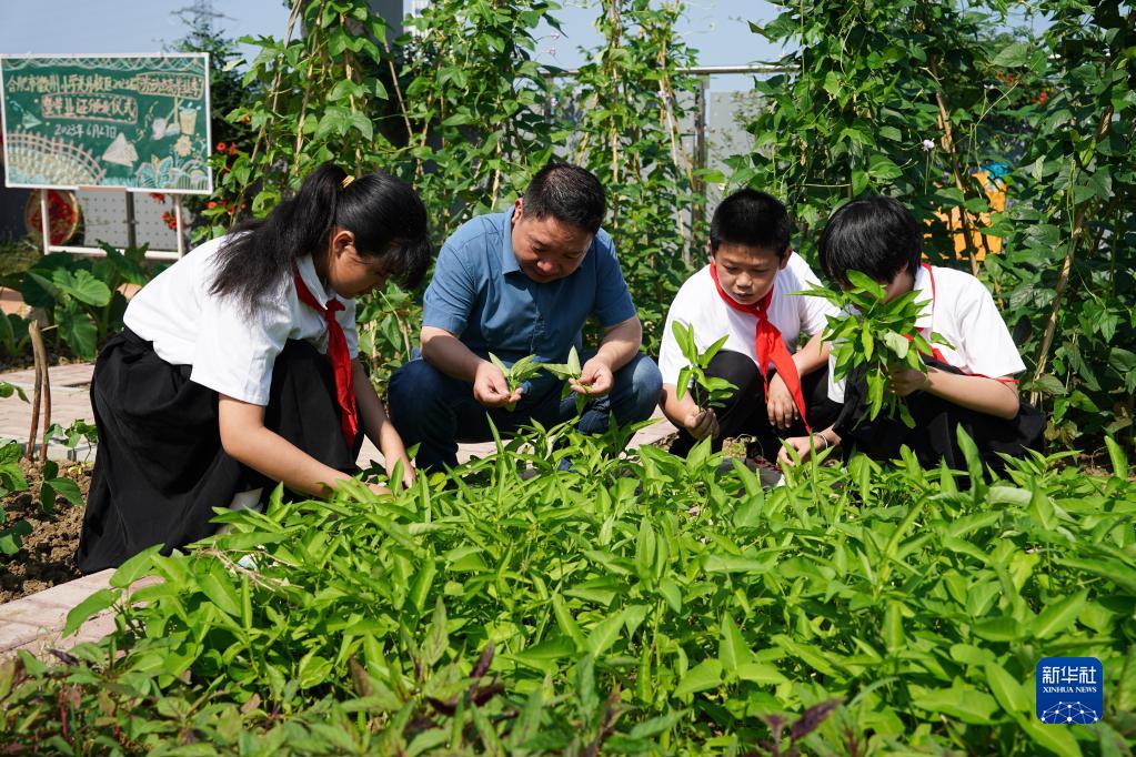 當日,安徽省合肥市徽州小學(xué)美丹校區勞動(dòng)課程學(xué)習畢業(yè)證頒發(fā)儀式在該校教學(xué)樓頂的“空中農場(chǎng)”舉行,六年級畢業(yè)生們最后一次為“空中農場(chǎng)”的農作物澆水、施肥,用勞動(dòng)點(diǎn)亮畢業(yè)季。