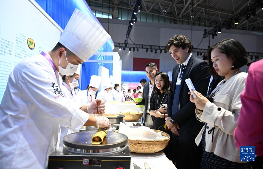 6月27日,與會(huì )嘉賓在第十四屆夏季達沃斯論壇文化之夜現場(chǎng)觀(guān)看天津特色美食制作。