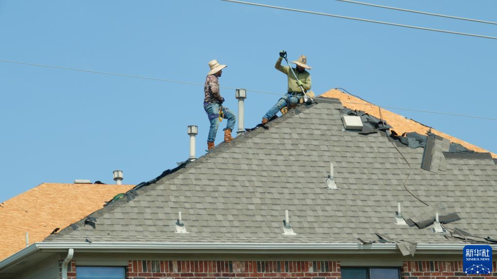 6月27日,在美國得克薩斯州達拉斯市郊,工人頭頂烈日修復屋頂。