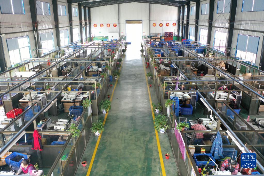 5月25日,工人在湖南邵陽(yáng)美麗來(lái)發(fā)制品有限公司車(chē)間內生產(chǎn)假發(fā)(無(wú)人機照片)。