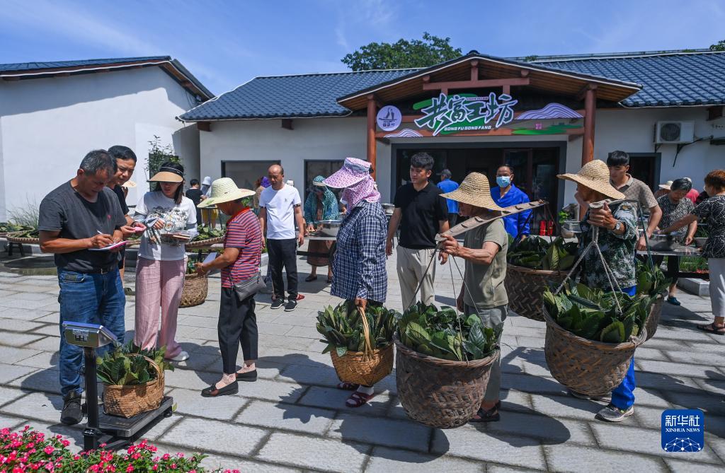 6月28日,塘棲鎮丁河村共富工坊的工作人員在收購周邊村民采摘下來(lái)的枇杷葉,用于生產(chǎn)特色的枇杷葉茶。前期丁河村邀請相關(guān)專(zhuān)家進(jìn)行枇杷葉茶的研發(fā),并于今年4月正式投產(chǎn),共富工坊目前每月收購來(lái)自周邊枇杷果農的數千斤枇杷葉用于制作枇杷葉茶。