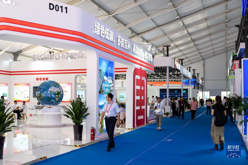 6月28日,參會(huì )人員在2023世界新能源新材料大會(huì )展覽區參觀(guān)。