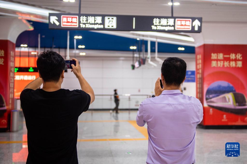 6月28日,在長(cháng)株潭城際軌道交通西環(huán)線(xiàn)一期工程的紅橋站,乘客在拍照。