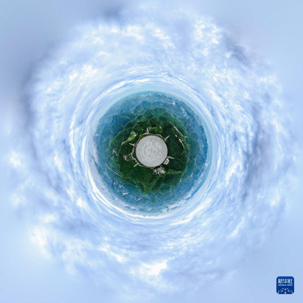 6月23日拍攝的“中國天眼”全景(維護保養期間拍攝,無(wú)人機照片)。