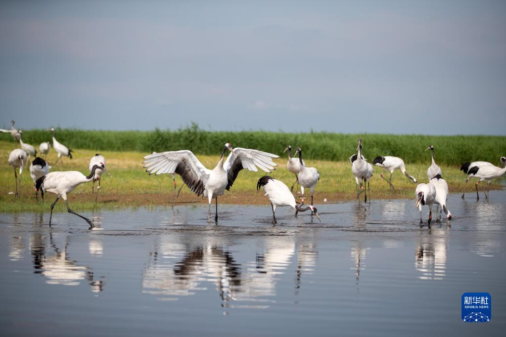 夏日,位于黑龍江省西部的黑龍江扎龍國家級自然保護區郁郁蔥蔥,丹頂鶴悠閑覓食,自在飛翔,呈現出一派生機勃勃的生態(tài)美景。
