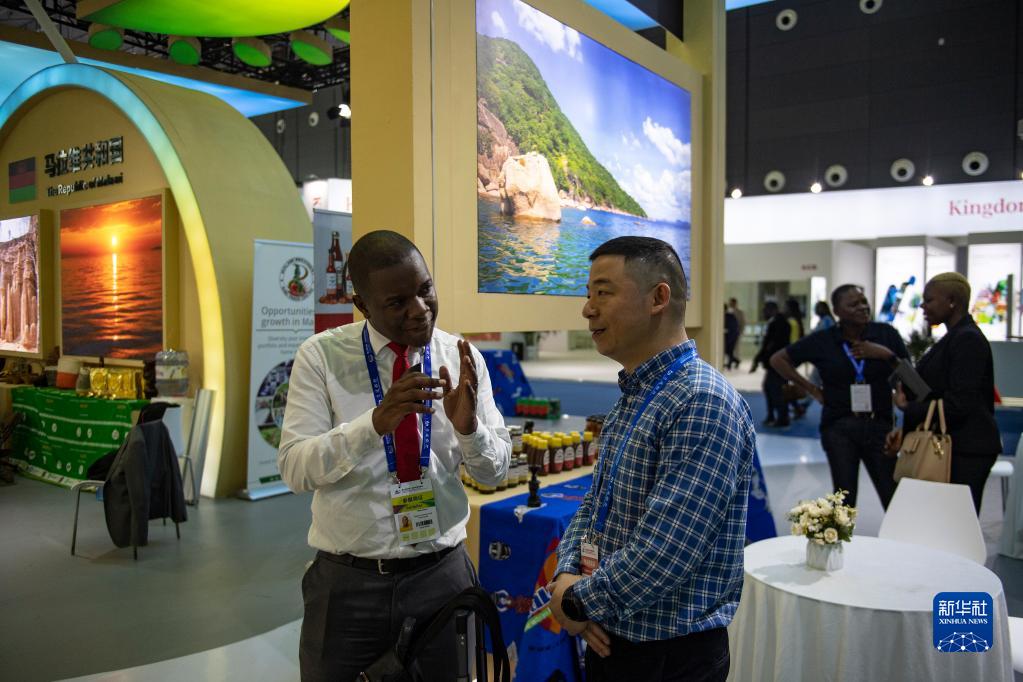 6月29日,在長(cháng)沙國際會(huì )展中心,一名馬拉維參展商與參觀(guān)者交流。
