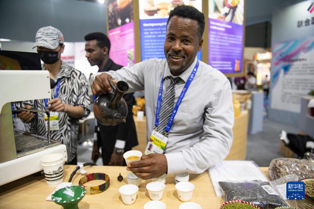 6月29日,在長(cháng)沙國際會(huì )展中心,參展商阿爾弗萊德·安托尼介紹埃塞俄比亞咖啡。