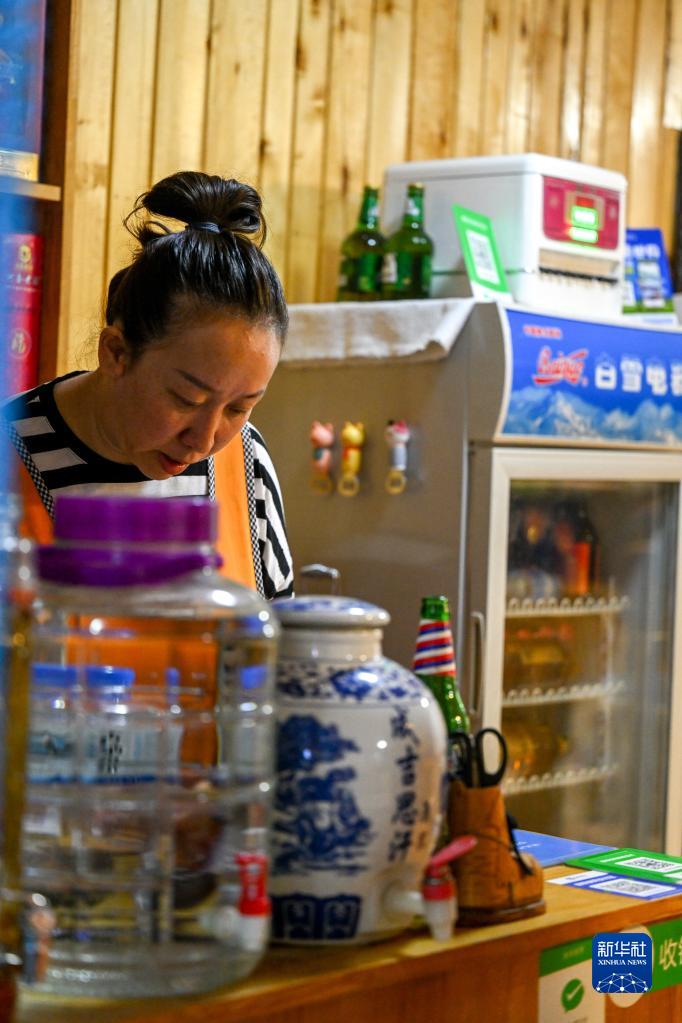 6月28日,卓婭的女兒馬焱在給客人結賬。卓婭一家從2003年開(kāi)始經(jīng)營(yíng)家庭游,從最初的4間客房已經(jīng)發(fā)展為24間,還能提供旅游項目服務(wù)。