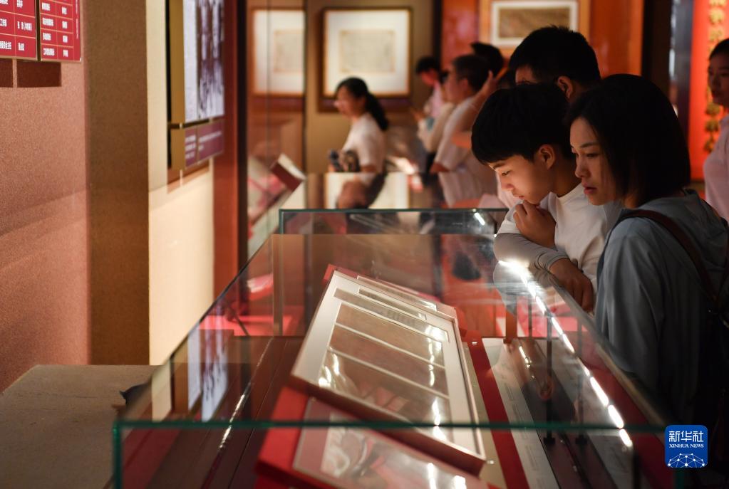 6月30日,觀(guān)眾在延安革命紀念館觀(guān)看《偉大歷程——中共中央在延安十三年歷史陳列》。