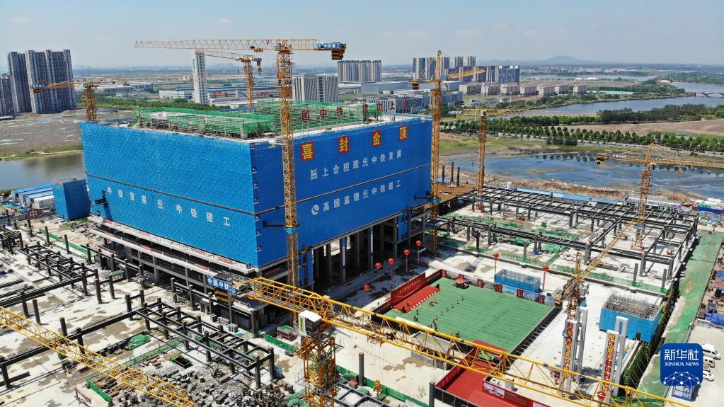 建設中的上合大廈(6月30日攝,無(wú)人機照片)。