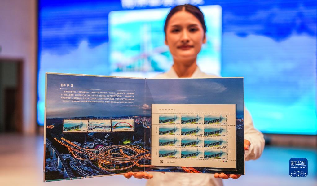 當日,《現代橋梁建設》特種郵票首發(fā)儀式在貴州省博物館舉行。此次發(fā)行的特種郵票一套3枚,小型張1枚,郵票圖案名稱(chēng)為滬蘇通長(cháng)江公鐵大橋、甌江北口大橋、平南三橋,小型張圖案名稱(chēng)為北盤(pán)江第一橋。