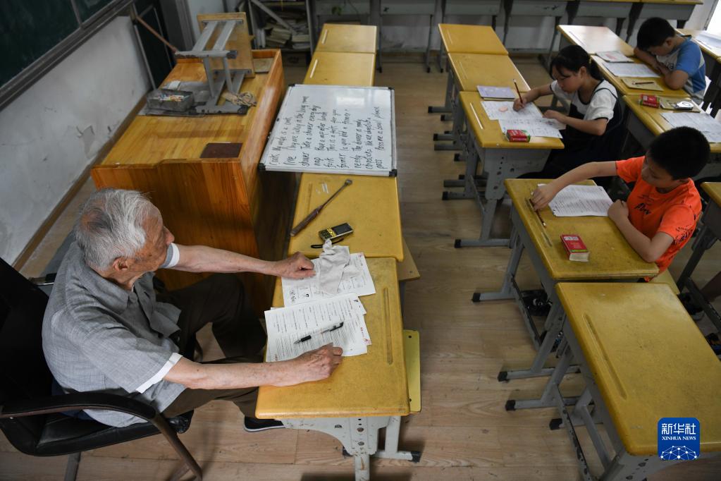 6月29日,在安徽省馬鞍山市和縣烏江鎮卜陳村的“留守未成年人之家”,葉連平在給孩子們免費上英語(yǔ)課。