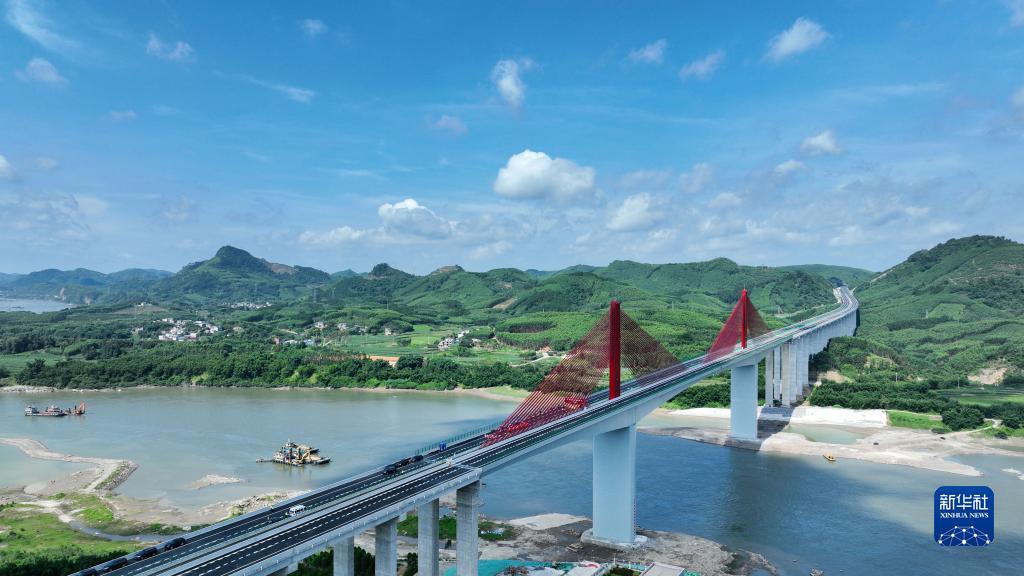 6月30日拍攝的剛建成通車(chē)的廣西賀巴高速培森柳江特大橋(無(wú)人機照片)。