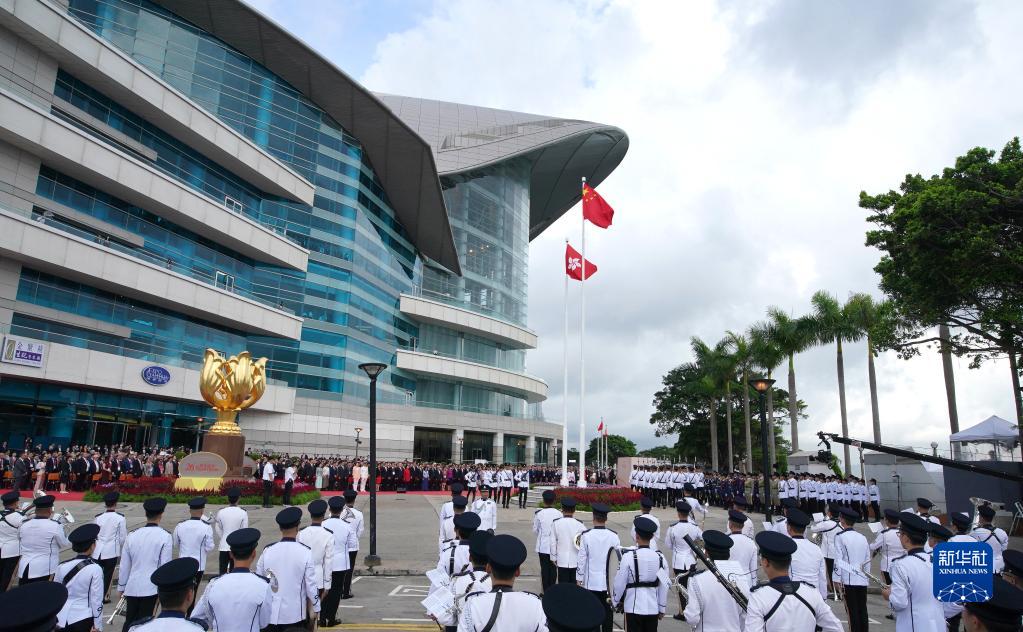 7月1日,香港特區政府在金紫荊廣場(chǎng)舉行升旗儀式,慶祝香港回歸祖國26周年。