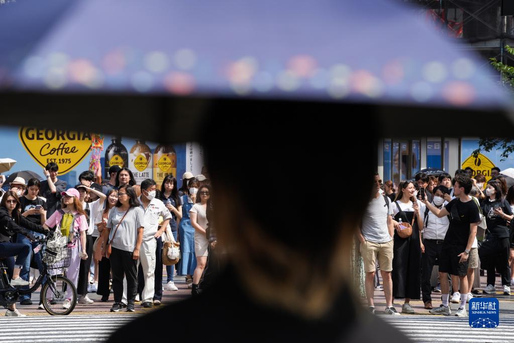當日,東京迎來(lái)高溫天氣,日本氣象協(xié)會(huì )將東京中暑警戒調至最高級別“危險”。