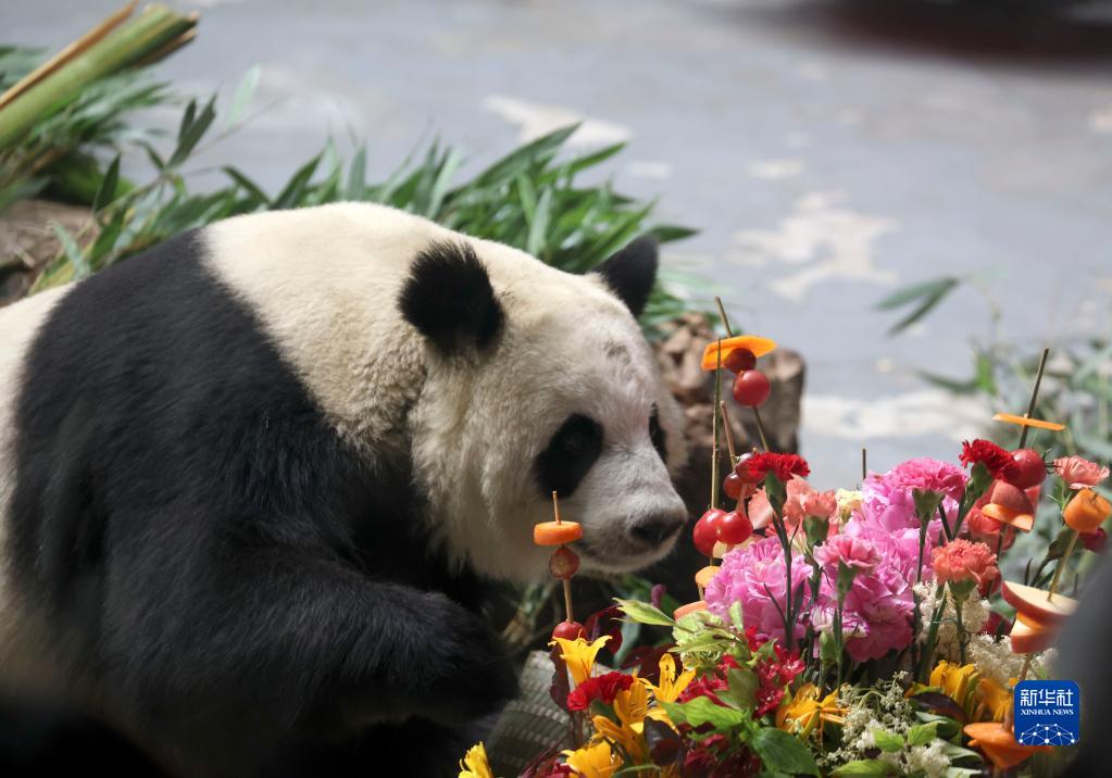 入夏以來(lái),在位于青海省西寧市的西寧熊貓館,飼養員用胡蘿卜、蘋(píng)果、番茄、竹子等食材,為館里的4只大熊貓進(jìn)行食物豐容,調整飲食結構。